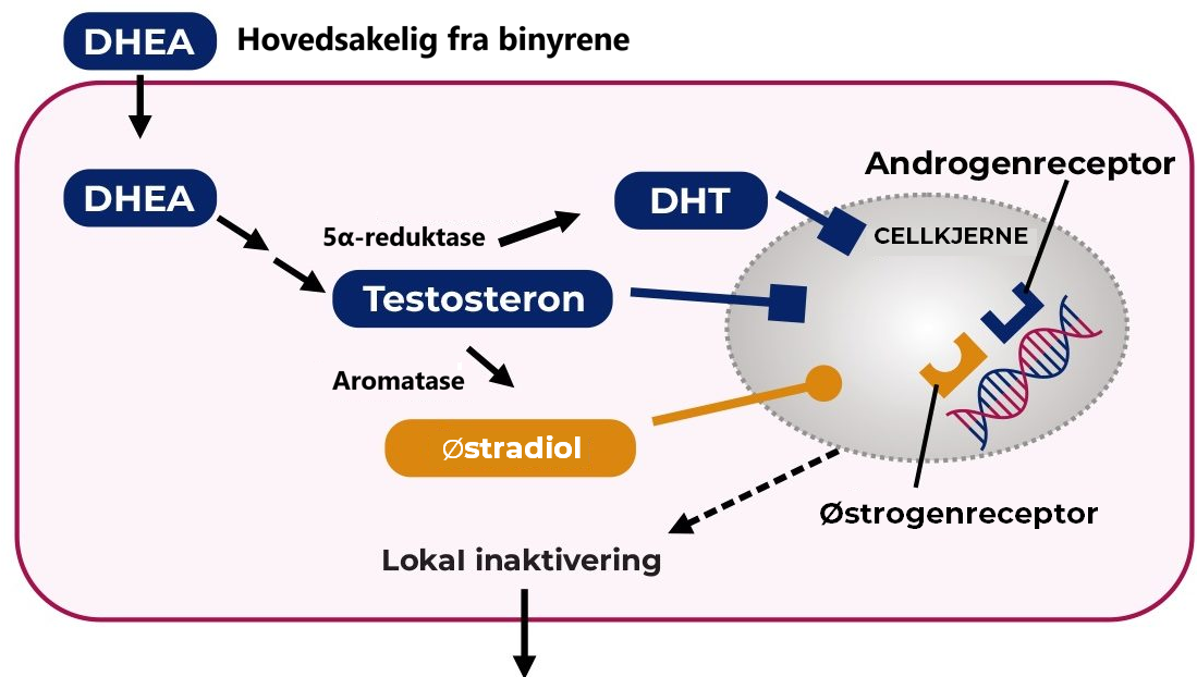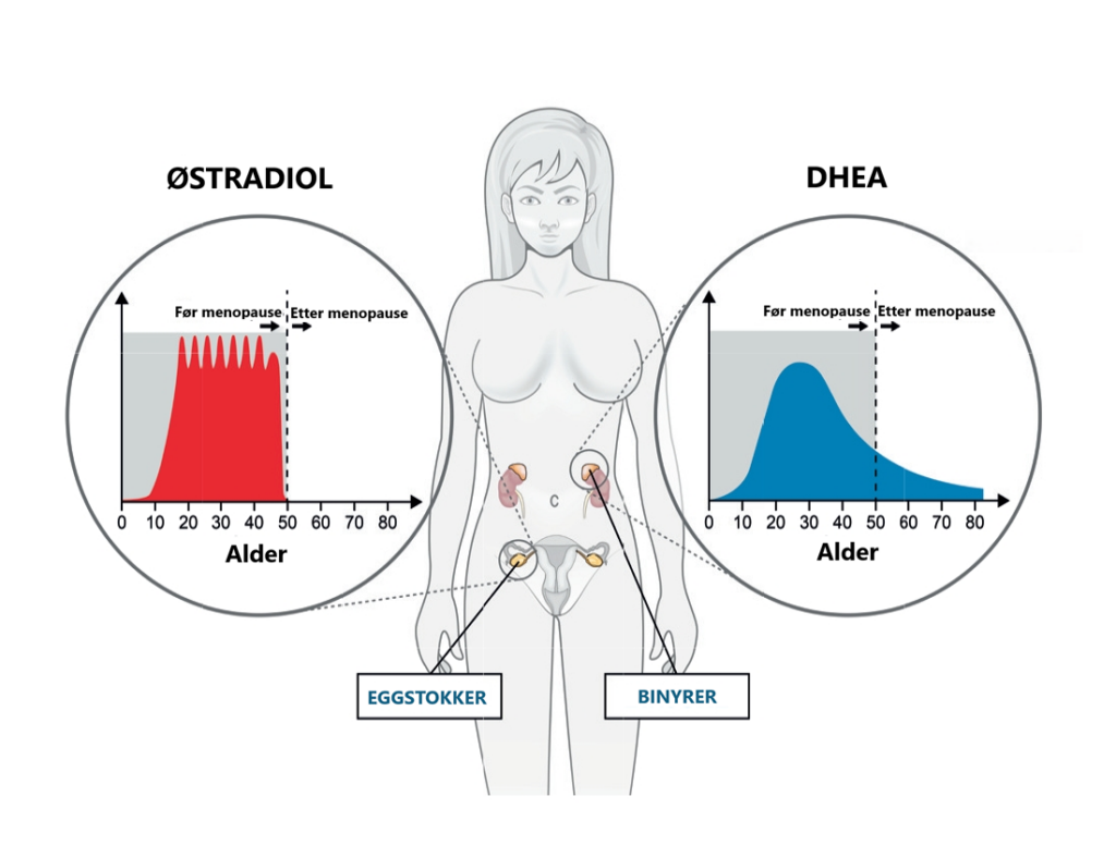 DHEA dannes hovedsakelig i binyrene og er den eneste signifikante kilden til østrogener og androgener etter overgangsalder (menopausen)3,4.
